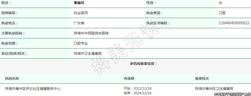 執(zhí)業(yè)范圍:口腔專(zhuān)業(yè)