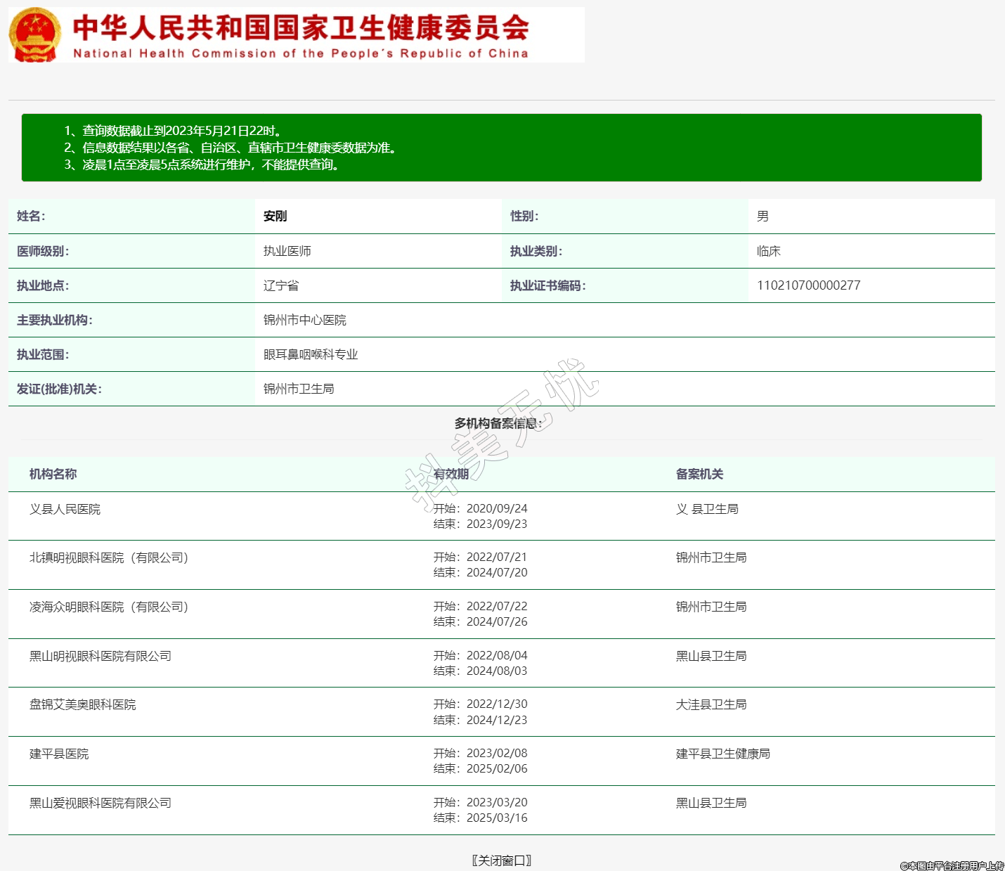 發(fā)證(批準(zhǔn))機關(guān):錦州市衛(wèi)生局
