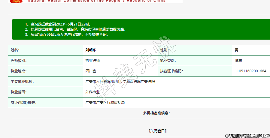 執(zhí)業(yè)證書編碼:110511602001664