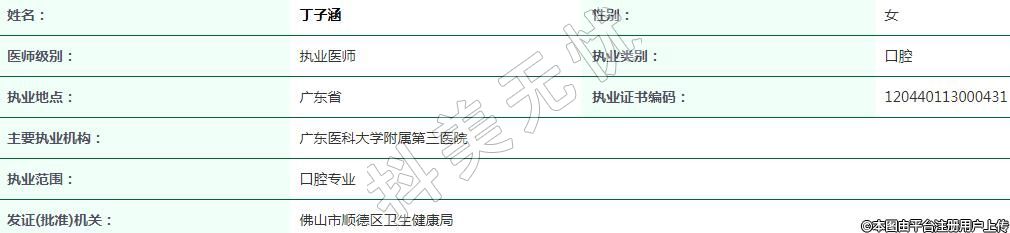 執(zhí)業(yè)證書編碼:120440113000431