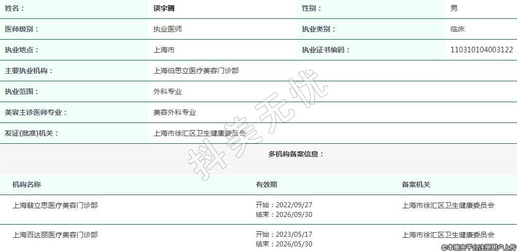 上海百達麗醫(yī)療美容執(zhí)業(yè)醫(yī)師 -