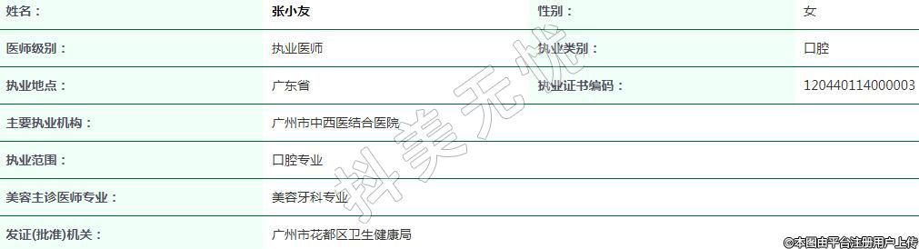執(zhí)業(yè)范圍:口腔專(zhuān)業(yè)