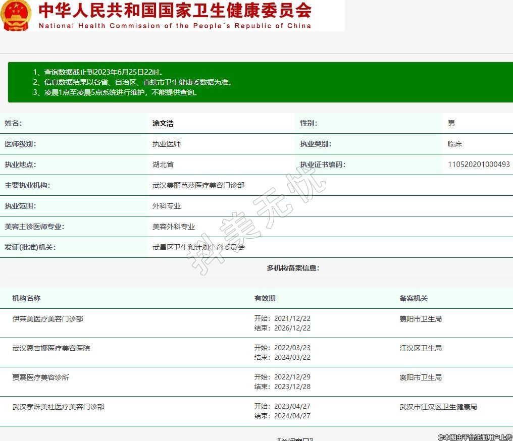 主要執(zhí)業(yè)機(jī)構(gòu):武漢美麗芭莎醫(yī)療美容門診部