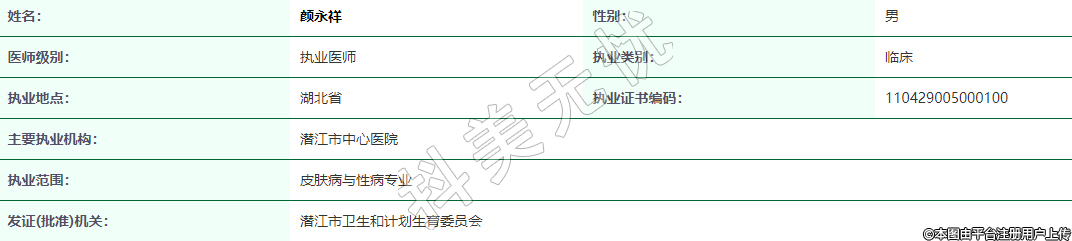 執(zhí)業(yè)范圍:皮膚病與性病專業(yè)
