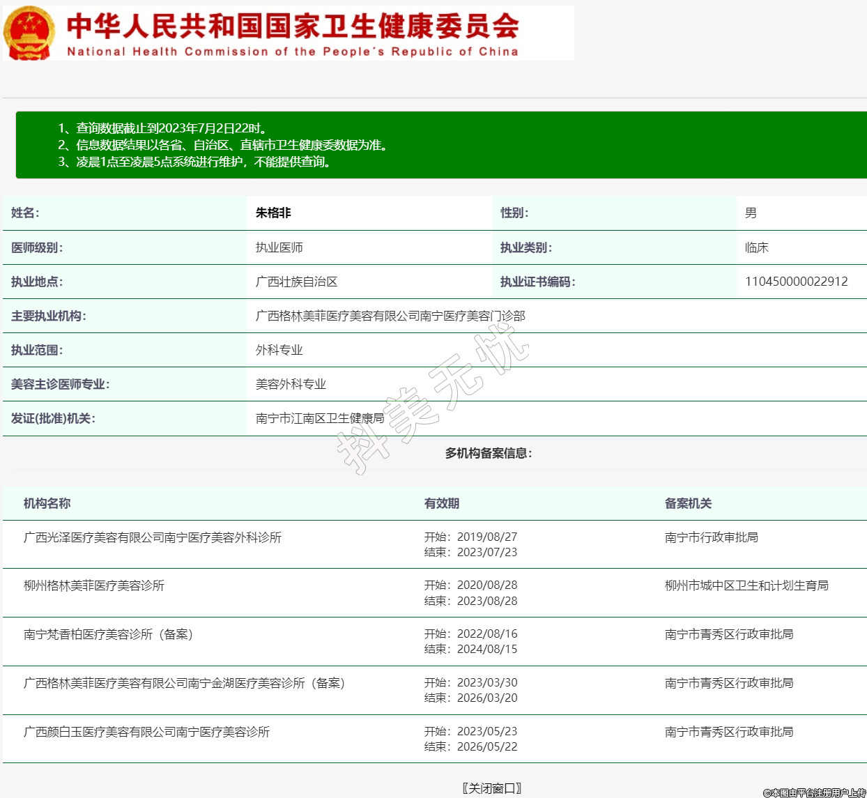 主要執(zhí)業(yè)機(jī)構(gòu):廣西格林美菲醫(yī)療美容有限公司南寧醫(yī)療美容門診部