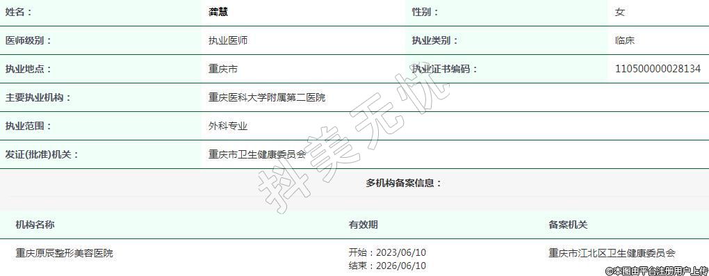 重慶原辰整形美容執(zhí)業(yè)醫(yī)師 -