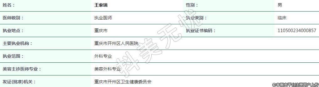重慶市開州區(qū)人民醫(yī)院醫(yī)療美容執(zhí)業(yè)醫(yī)師