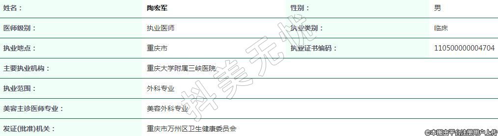重慶大學(xué)附屬三峽醫(yī)院醫(yī)療美容執(zhí)業(yè)醫(yī)師