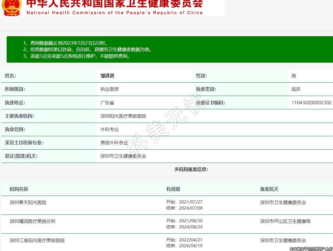 主要執(zhí)業(yè)機構(gòu):深圳陽光醫(yī)療美容醫(yī)院