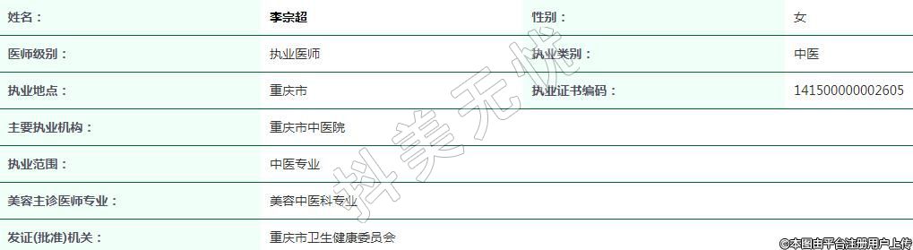 重慶市中醫(yī)院醫(yī)療美容執(zhí)業(yè)醫(yī)師