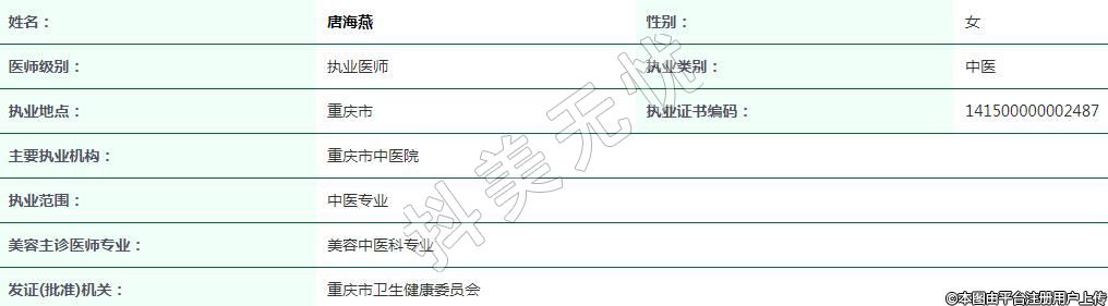 重慶市中醫(yī)院醫(yī)療美容執(zhí)業(yè)醫(yī)師
