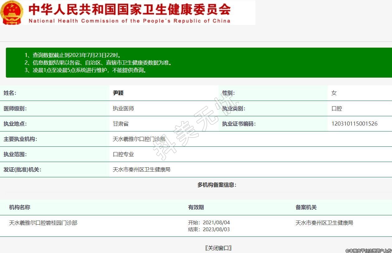 主要執(zhí)業(yè)機構(gòu):天水羲雅爾口腔門診部