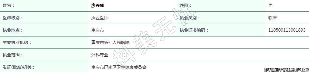 主要執(zhí)業(yè)機(jī)構(gòu):重慶市第七人民醫(yī)院