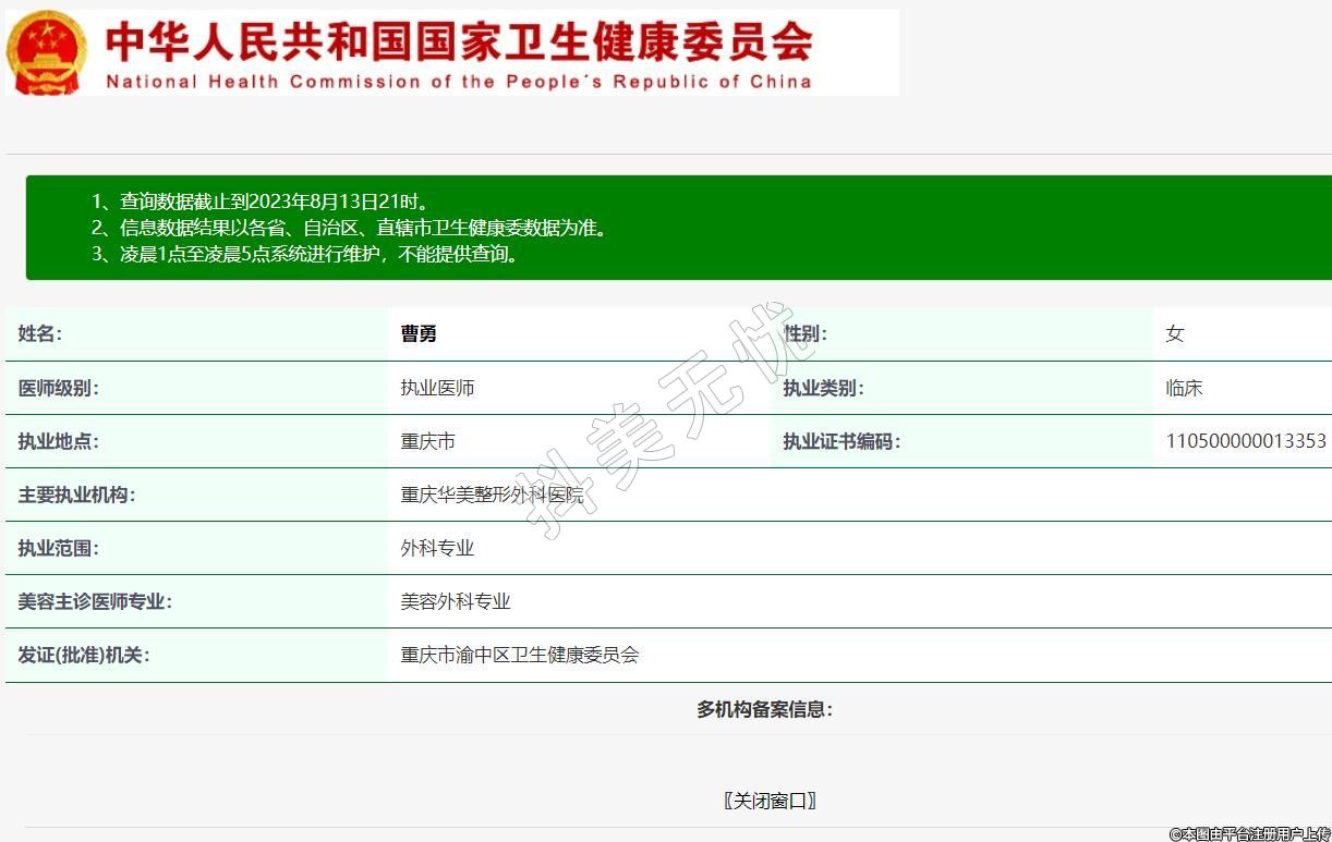 發(fā)證(批準)機關:重慶市渝中區(qū)衛(wèi)生健康委員會
