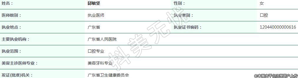 執(zhí)業(yè)范圍:口腔專(zhuān)業(yè)