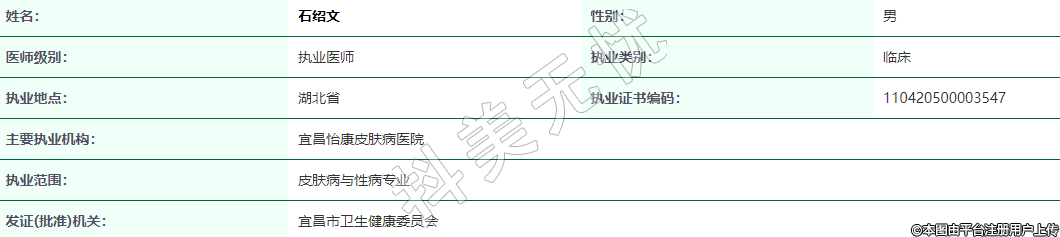 執(zhí)業(yè)范圍:皮膚病與性病專業(yè)