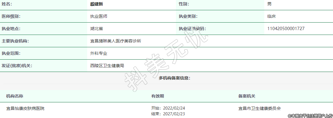 主要執(zhí)業(yè)機(jī)構(gòu):宜昌旖琳美人醫(yī)療美容診所