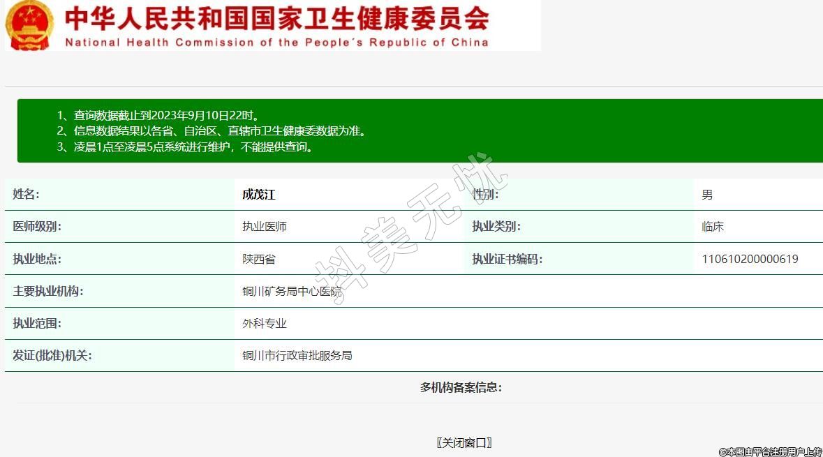 執(zhí)業(yè)證書編碼:110610200000619