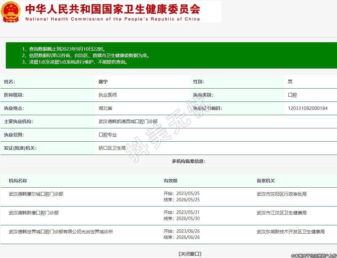 主要執(zhí)業(yè)機構(gòu):武漢德韓凱德西城口腔門診部