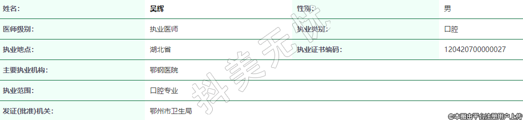 執(zhí)業(yè)范圍:口腔專(zhuān)業(yè)
