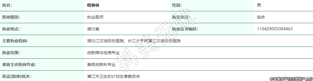 執(zhí)業(yè)范圍:皮膚病與性病專業(yè)