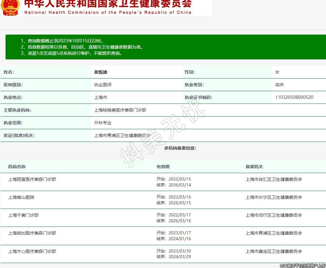 主要執(zhí)業(yè)機(jī)構(gòu):上海桉锘美醫(yī)療美容門(mén)診部