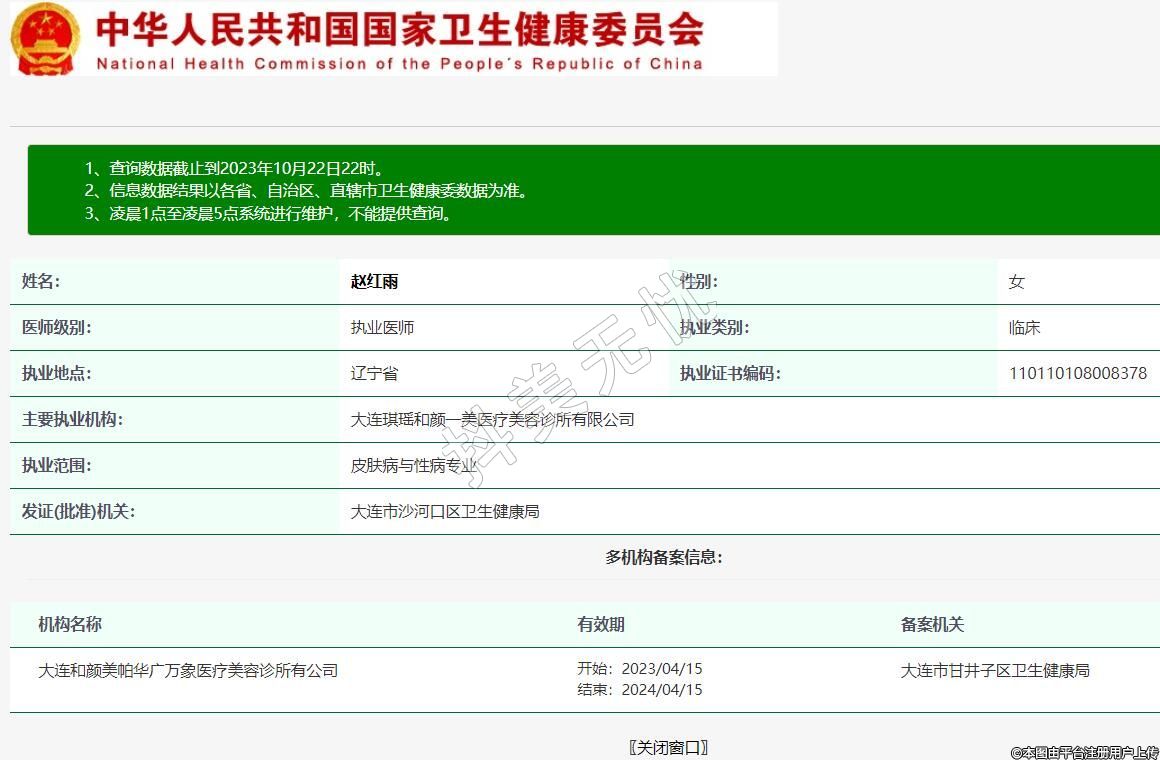 主要執(zhí)業(yè)機構(gòu):大連琪瑤和顏一美醫(yī)療美容診所有限公司