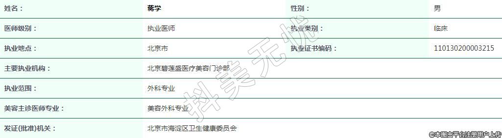 北京碧蓮盛醫(yī)療美容執(zhí)業(yè)醫(yī)生