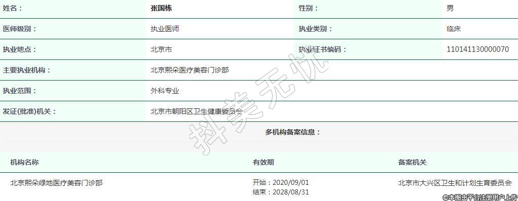 北京熙朵醫(yī)療美容執(zhí)業(yè)醫(yī)生