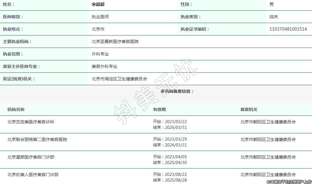 北京圣嘉新醫(yī)療美容執(zhí)業(yè)醫(yī)生