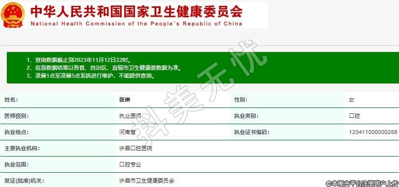 發(fā)證(批準)機關:許昌市衛(wèi)生健康委員會