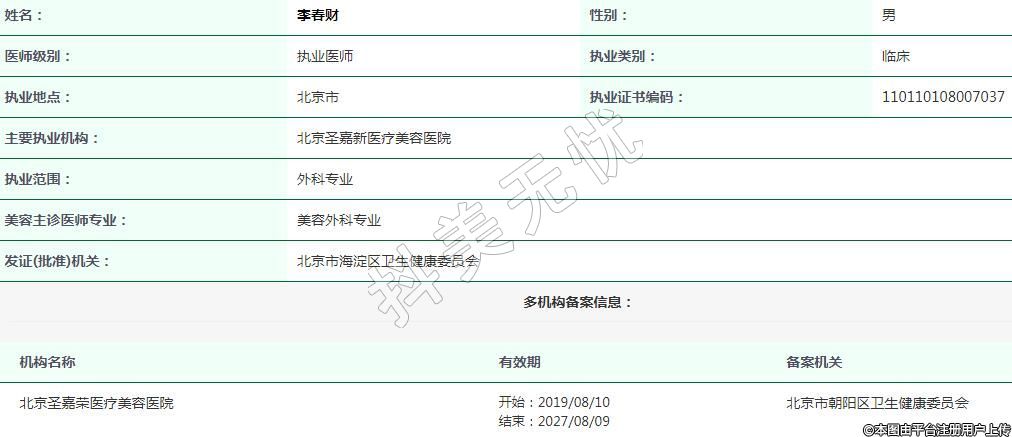 北京圣嘉新醫(yī)療美容執(zhí)業(yè)醫(yī)生
