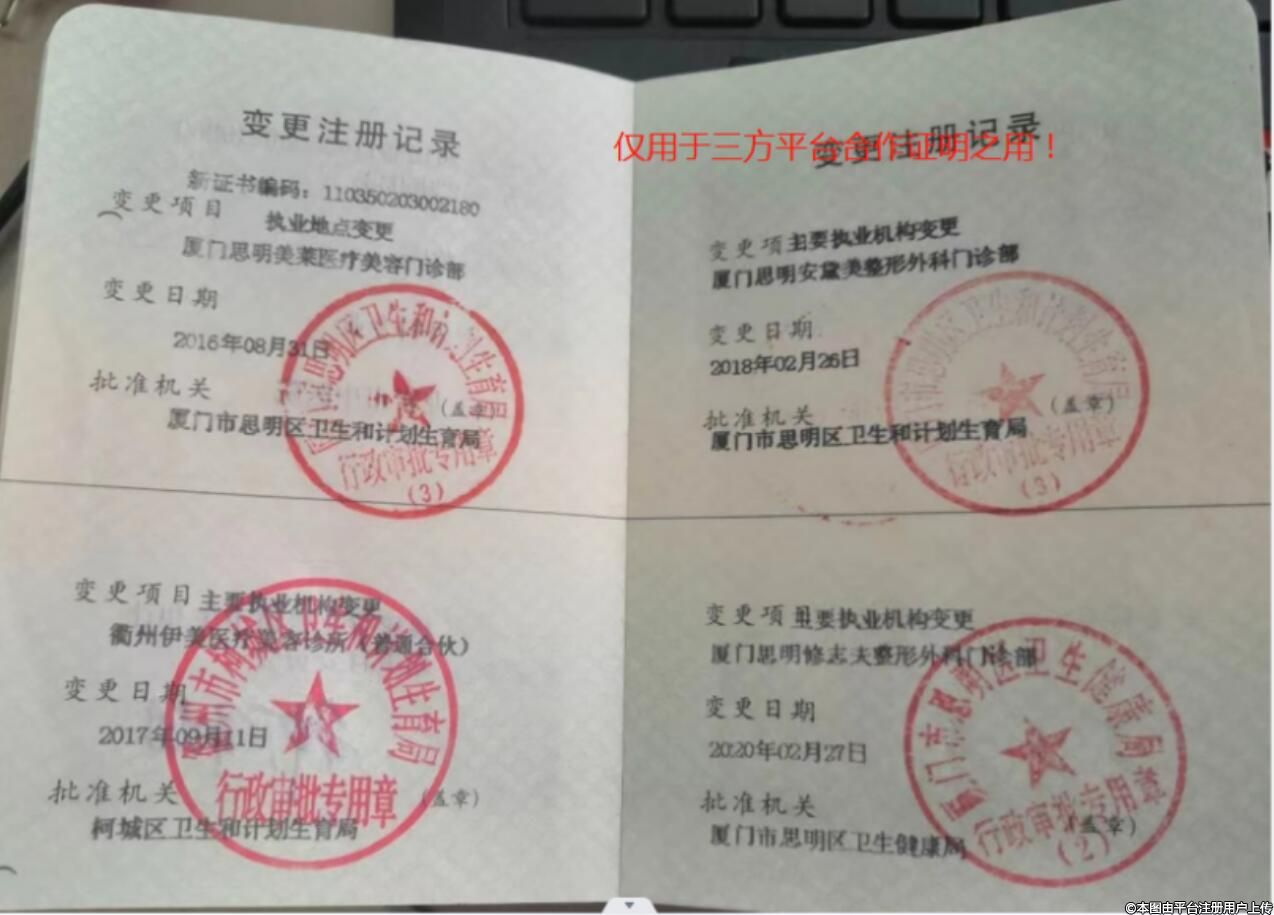 主要執(zhí)業(yè)機(jī)構(gòu):廈門思明修志夫整形外科門診部