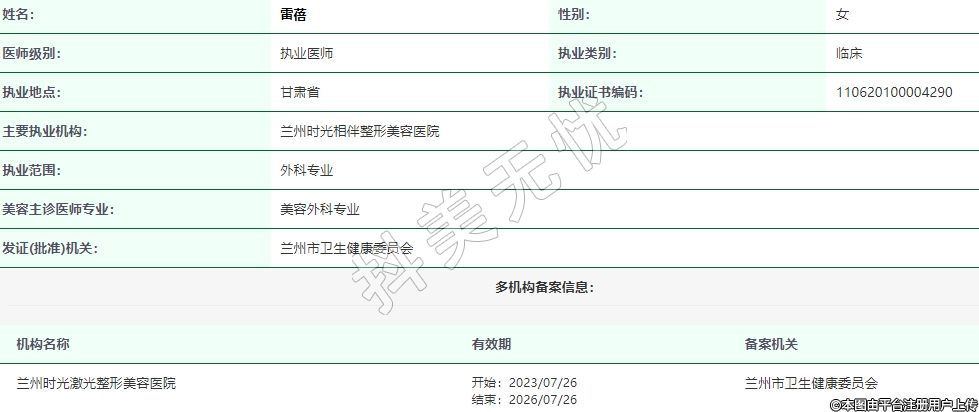 主要執(zhí)業(yè)機(jī)構(gòu):蘭州時(shí)光相伴整形美容醫(yī)院