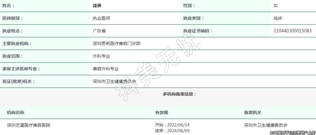 深圳藝星醫(yī)療美容執(zhí)業(yè)醫(yī)師 -