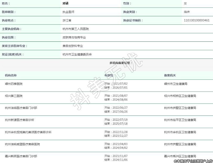 紹興第三醫(yī)院醫(yī)療美容執(zhí)業(yè)醫(yī)生