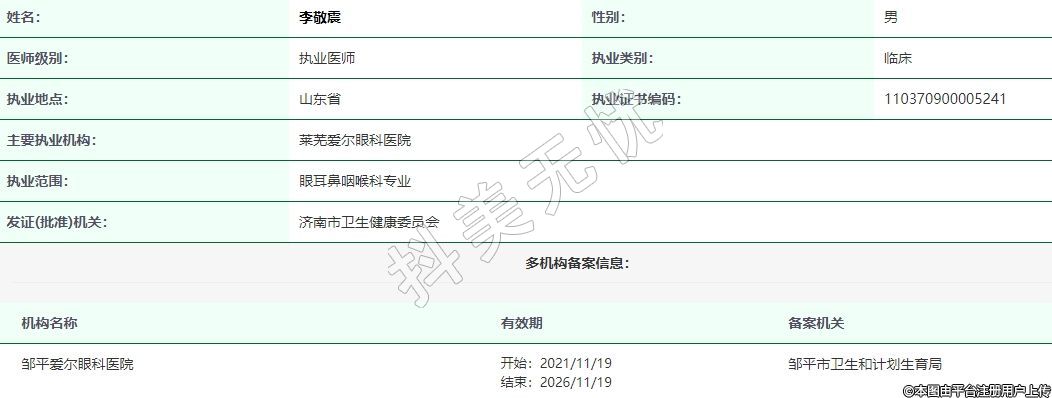 主要執(zhí)業(yè)機(jī)構(gòu):萊蕪愛爾眼科醫(yī)院