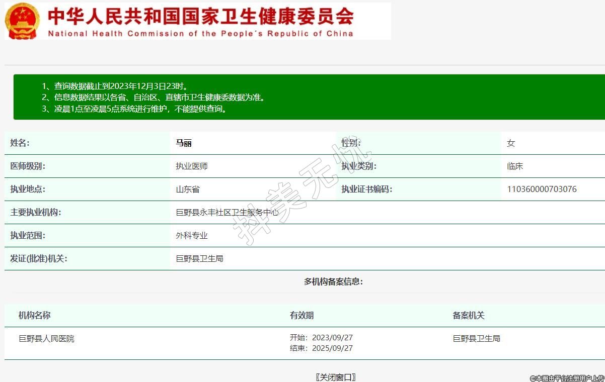 發(fā)證(批準(zhǔn))機(jī)關(guān):巨野縣衛(wèi)生局