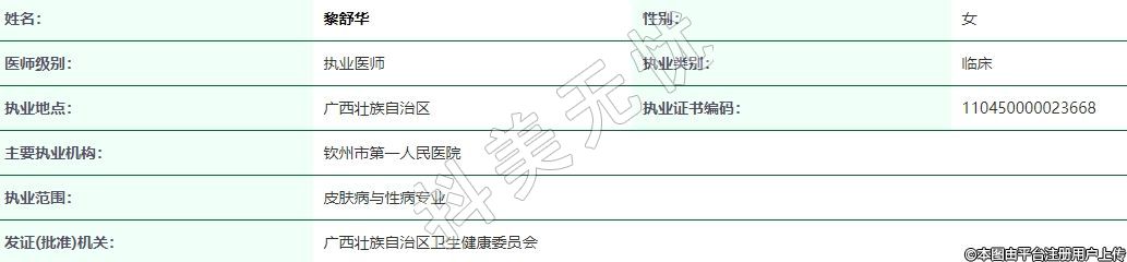 執(zhí)業(yè)范圍:皮膚病與性病專業(yè)