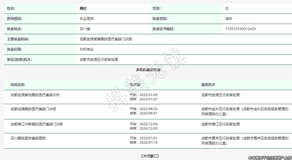 主要執(zhí)業(yè)機構(gòu):成都武侯紫藤晶膚醫(yī)療美容門診部