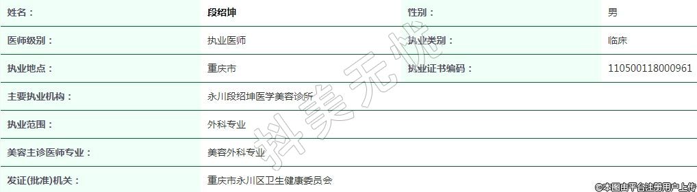 重慶尚美段紹坤醫(yī)學美容執(zhí)業(yè)醫(yī)師