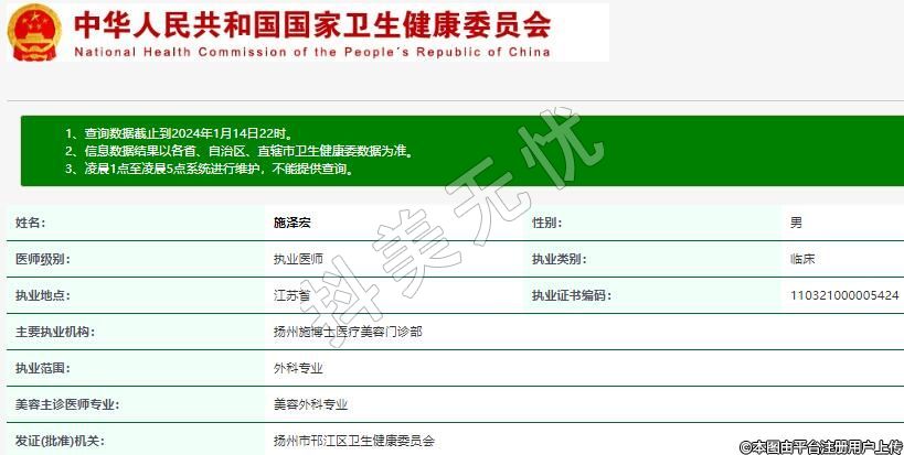 主要執(zhí)業(yè)機構(gòu):揚州施博士醫(yī)療美容門診部