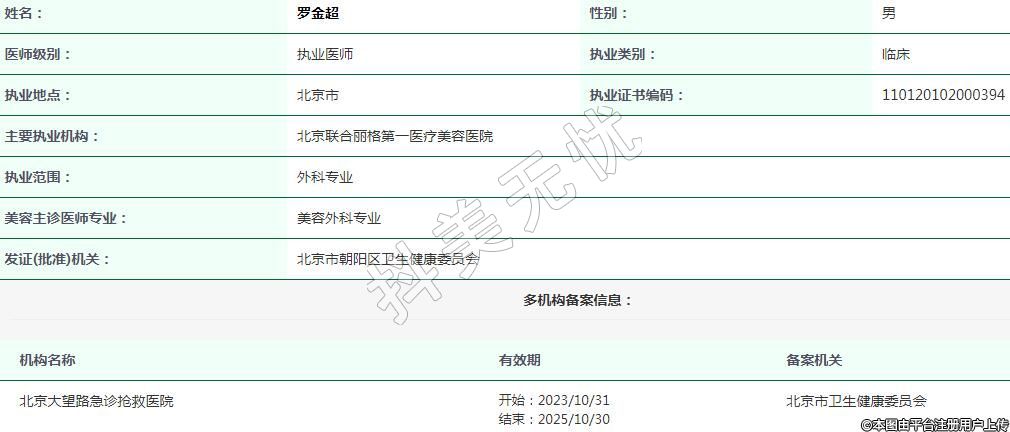 北京聯(lián)合麗格第一醫(yī)療美容執(zhí)業(yè)醫(yī)生