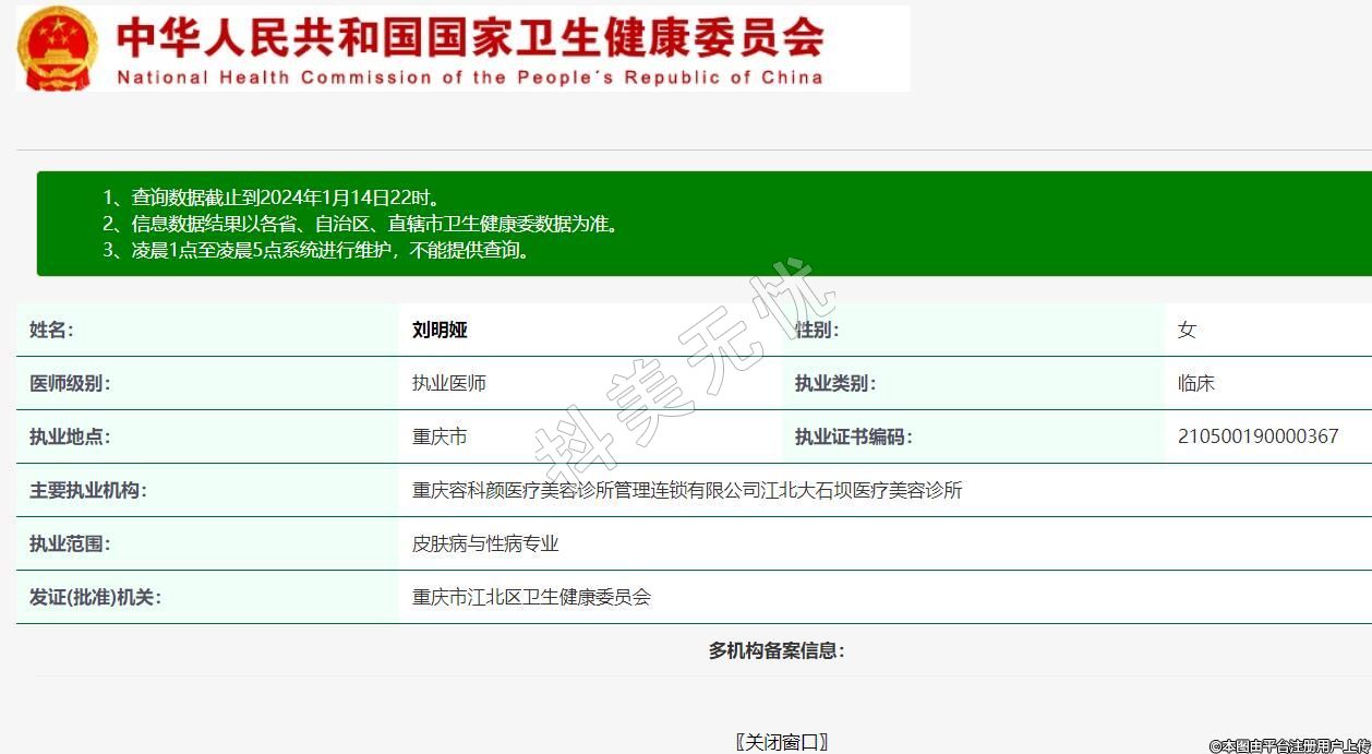 主要執(zhí)業(yè)機構(gòu):重慶容科顏醫(yī)療美容診所管理連鎖有限公司江北大石壩醫(yī)療美容診所