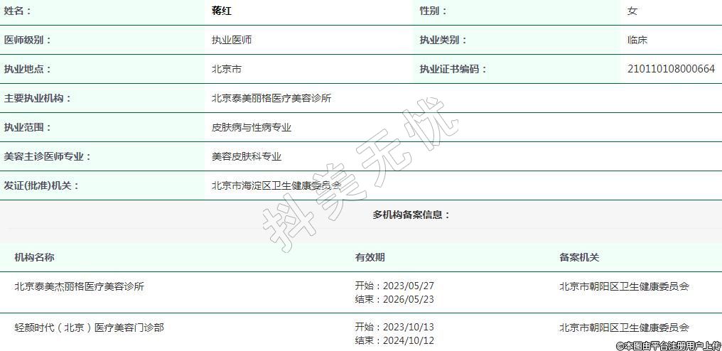 主要執(zhí)業(yè)機(jī)構(gòu):北京泰美麗格醫(yī)療美容診所