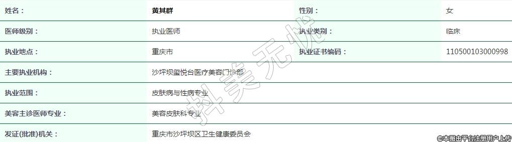 主要執(zhí)業(yè)機(jī)構(gòu):沙坪壩璽悅臺(tái)醫(yī)療美容門診部