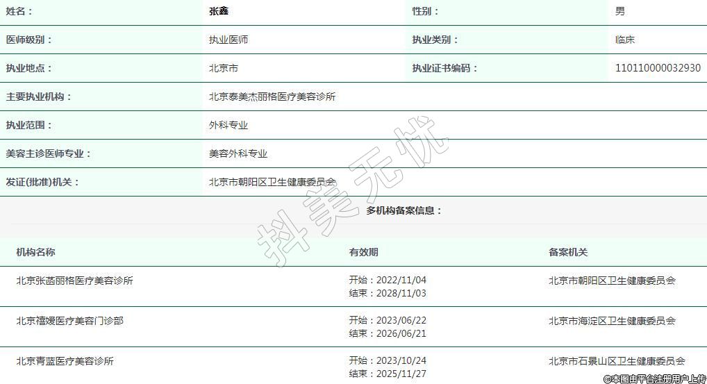 主要執(zhí)業(yè)機構(gòu):北京泰美杰麗格醫(yī)療美容診所