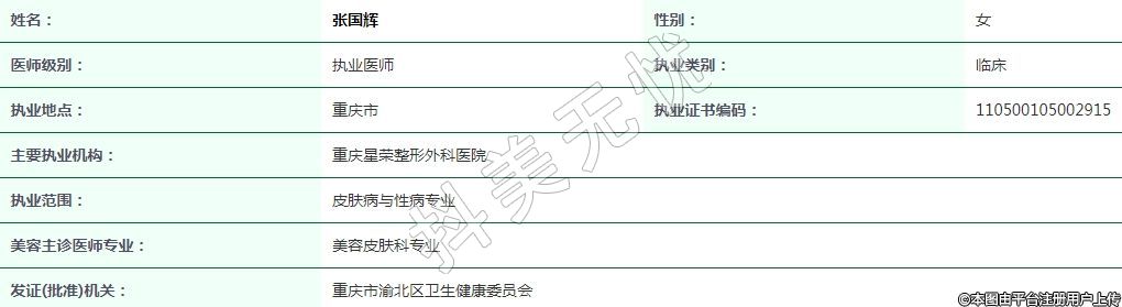 重慶星榮整形外科執(zhí)業(yè)醫(yī)師