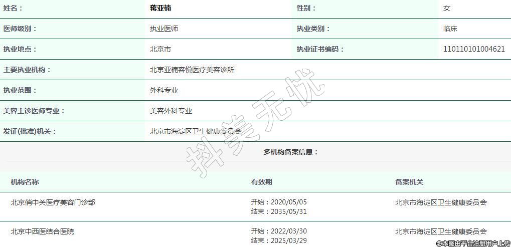 主要執(zhí)業(yè)機構:北京亞楠容悅醫(yī)療美容診所