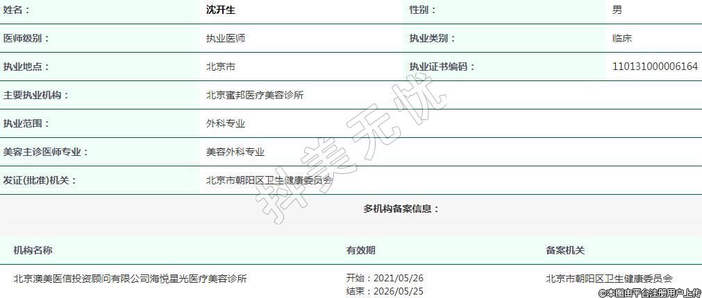北京蜜邦醫(yī)療美容執(zhí)業(yè)醫(yī)生
